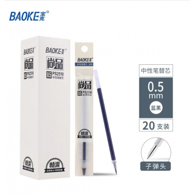 宝克(BAOKE)笔芯 中性笔芯 商务办公签字笔替芯 学生写字水笔芯 学习办公用品 文具 畅滑 20支 蓝黑色0.5 PS2510