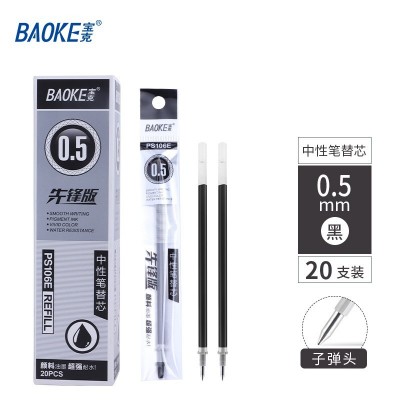 宝克(BAOKE) PS106笔芯中性笔芯 商务办公水笔替芯通用学生考试水笔芯 学习办公用品文具 0.5mm黑色笔芯 20支装 PS106E
