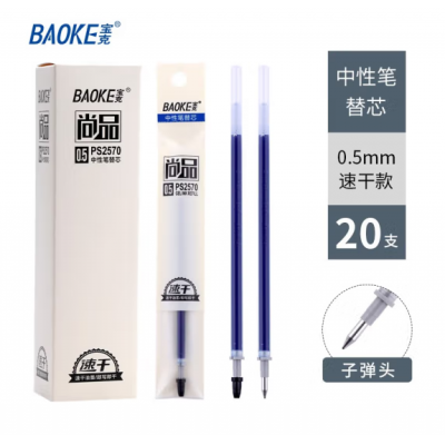 宝克(BAOKE)笔芯 中性笔芯 商务办公签字笔替芯 学生写字水笔芯 学习办公用品 文具 速干 20支 蓝色0.5 PS2570