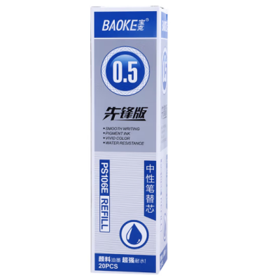 宝克(BAOKE) 子弹头通用中性笔芯 商务办公水笔替芯 学生考试水笔芯文具 PS106E 蓝色0.5mm(20支装)