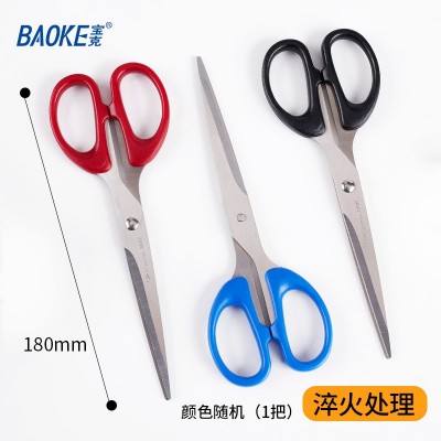 宝克(BAOKE) 不锈钢剪刀 特大号学生手工办公生活家用剪刀 办公用品 高硬度多功能剪刀 文具 180mm中号颜色随机