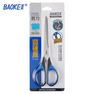 宝克(baoke) SR1502 不锈钢剪刀 办公用品/家用/生活剪刀 高硬度 180mm中号加厚软胶手柄 1卡装 颜色随机