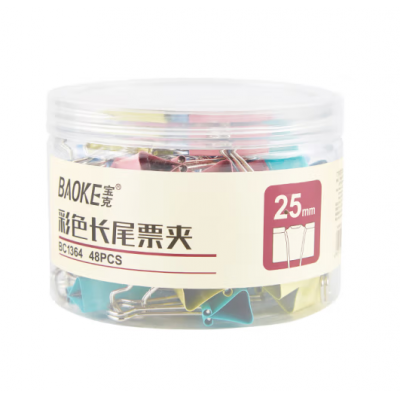 宝克(BAOKE) 夹子 办公文具 彩色长尾夹 票夹 大号金属燕尾夹票据夹子 桌面办公用品 文具 彩色 25mm 筒/48pcs BC1364