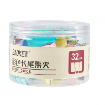 首页 > 办公用品 > 文具 > 宝克(BAOKE)BC1363 24只32mm彩色长尾夹票夹 燕尾夹票夹夹子办公用品