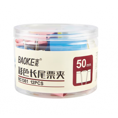 首页 > 办公用品 > 文具 > 宝克(BAOKE)BC1361 50mm彩色长尾夹票夹 长尾票夹 燕尾夹 12只/筒