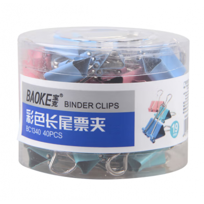 宝克(BAOKE)票据夹办公夹子小号中号大号彩色长尾夹四色装铁夹子 燕尾夹 宝克长尾夹 19MM 一盒40个