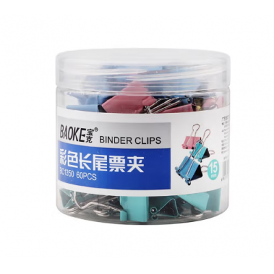 宝克(BAOKE)彩色长尾夹 金属文件夹 大中小号燕尾夹 票据夹子 学生试卷夹 办公用品 文具 彩色 15mm 筒/60pcs BC1350