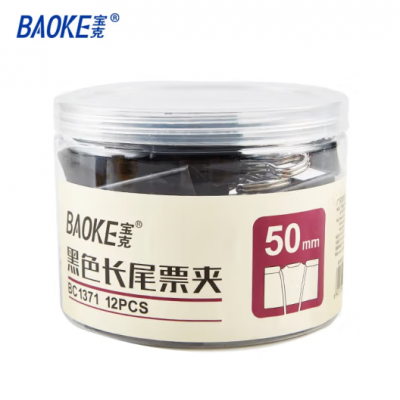 宝克(BAOKE) 夹子 办公文具 彩色长尾夹 票夹 大号金属燕尾夹票据夹子 桌面办公用品 文具 黑色 50mm 筒/12pcs BC1371