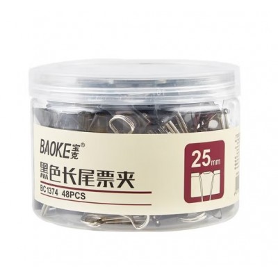 宝克(BAOKE)BC1374 黑色长尾夹 4#号金属燕尾夹票据夹 25mm*48只/筒