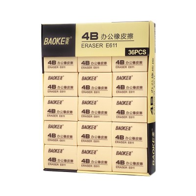 宝克(baoke) E-611 办公橡皮擦 学生4B黄色软皮橡皮砖/美术橡皮擦/考试专用/商务办公财会用 文具店批发 3.2*2.1*1cm 36块装