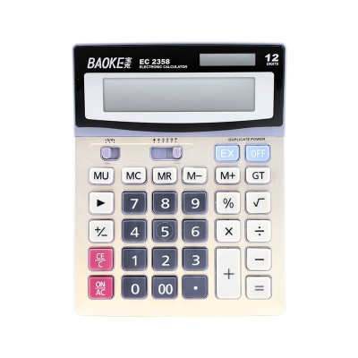 首页 > 办公设备 > 计算器 > 宝克(baoke) EC2358太阳能计算器 12位大屏幕桌面计算器 双电源桌面通用办公计算器 财务/银行人员/商务办公用品 配5号电池1节 190*150*30mm 质感金 1个装