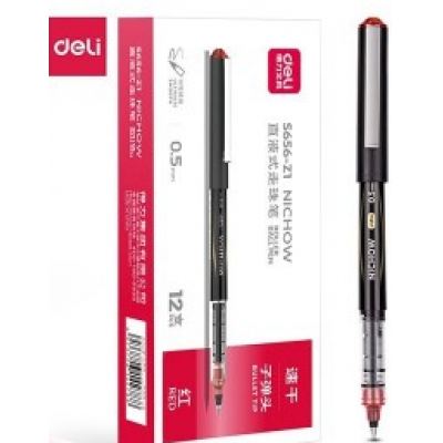 得力签字笔 S656-Z1直液式走珠笔中性笔速干笔学生ins刷题笔 0.5mm子弹头(红色)(支)