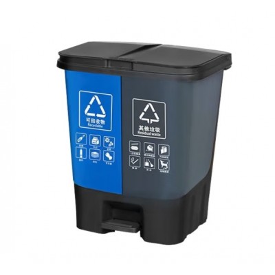 首页 > 用具 > 其他厨房用具 > 家庭清洁分类环保干湿两用垃圾桶脚踏带盖加厚 蓝灰 可回收+其他(40L)