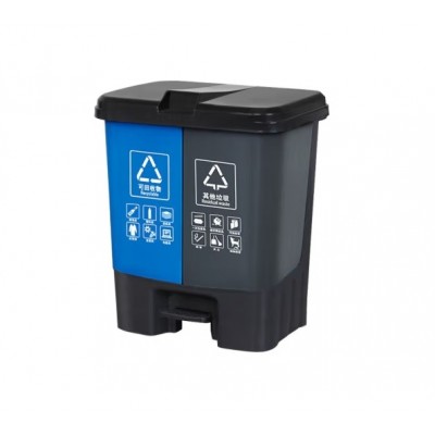 首页 > 用具 > 其他厨房用具 > 双桶脚踏垃圾分类垃圾桶厨房商用塑料户外环卫垃圾箱60L蓝灰(可回收+其他)