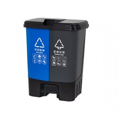 双桶分类垃圾桶80L蓝灰 可回收物+其他垃圾 脚踏式大容量干湿有害厨余垃圾桶