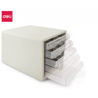 得力(deli)5层手拉桌面面储物柜资料柜 桌面文件收纳学科试卷分类 带索引标签抽屉资料收纳柜 灰色9775