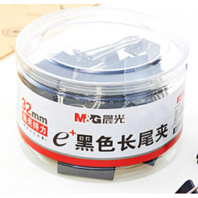 晨光(M&G)长尾夹 3#长尾夹32mm 24只/罐 黑色长尾夹 中号金属票据夹 Eplus系列办公燕尾夹 ABS92734