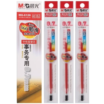 首页 > 办公用品 > 文具 > 晨光(M&G) MG6128C 中性笔芯大笔画 0.7mm水笔替芯 签字笔芯20支/盒 红色