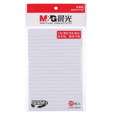 首页 > 办公用品 > 文具 > 晨光 M&G 横线便利贴记事贴便签纸 YS-108 A5 (白色) 50页/本