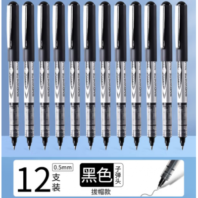 白雪 PVR-155 直液式走珠中性笔 子弹型0.5 蓝色 12支/盒 商务办公学生水笔走珠笔 开学文具