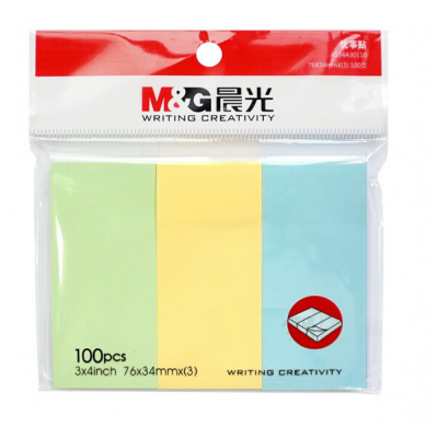 晨光YS-14 优事贴三分条自粘便条纸 AS34A30110 76*34mm*3 (黄色、绿色、蓝色) 100页/条 3条/包