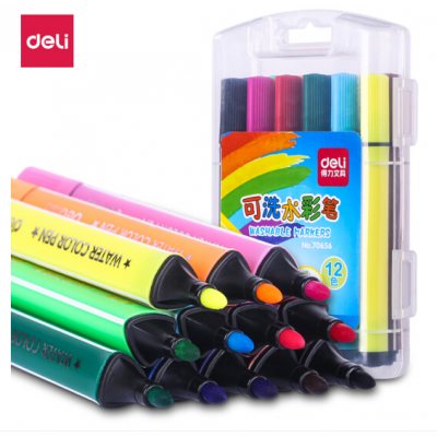 得力(deli)70656 可水洗12色水彩笔绘画笔 粗三角杆 盒装20盒/组