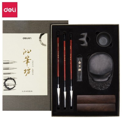 得力 74289 文房四宝毛笔书法套装(毛笔/墨锭/石砚/笔搁/水碗/镇尺)(套)