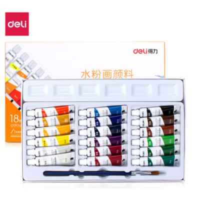 首页 > 办公用品 > 颜料 > 得力(deli) 73863 18色5ml学生美术专用入门级水粉画绘画颜料 水粉颜料 10盒/组中考考试礼物
