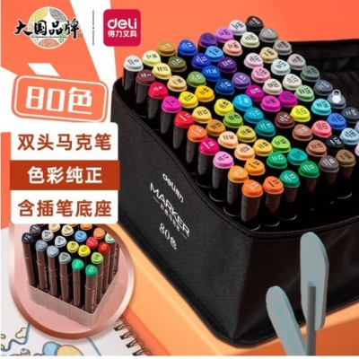 首页 > 办公用品 > > 得力(deli)马克笔套装80色双头速干学生六一儿童节礼物 水彩笔绘画画笔生日开学礼物 便携提袋带底座33807-80
