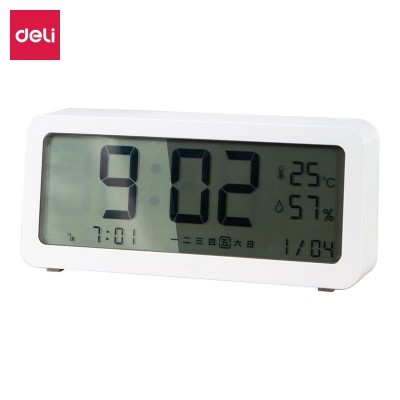得力8827 多功能电子钟(白色)(只)大号多功能闹钟 学生背光电子钟时钟儿童男女孩多功能起床神器 大气简约温湿度计显示