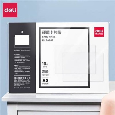 得力64202-A3硬质卡片袋(透明)(个)(10个/包)