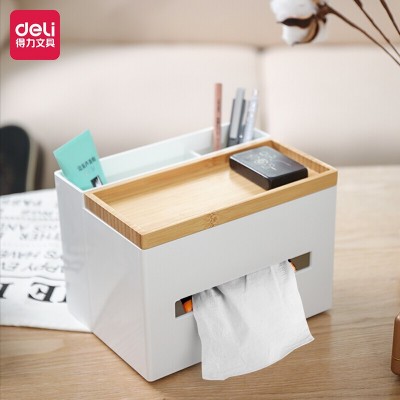 得力(deli) 简约笔筒 北欧家用纸巾收纳盒 创意木塑式办公桌面多功能收纳客厅茶几木质 自由分格 8916
