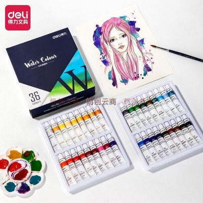 得力(deli)水彩颜料 36色12ml 大容量画画美术专用 便携专业级学生儿童绘画套装便携工具写生 画具画材73900