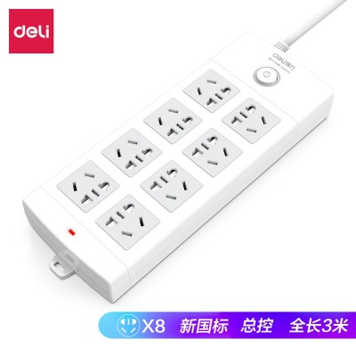 得力18211插座_8组_3米_PVC袋装(白)(只)