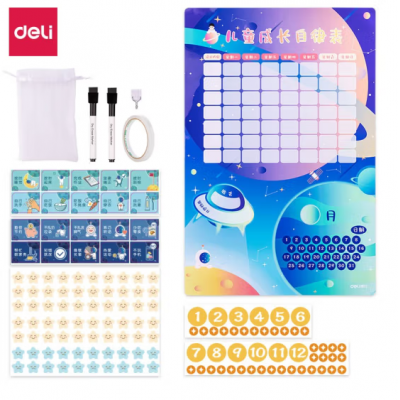 首页 > 办公用品 > 文具 > 得力(deli) 幼儿园小学生儿童成长自律表 画板 儿童房墙贴可擦 暑期学习计划管理表 软磁铁白板 MF1128 400*600mm 蓝色