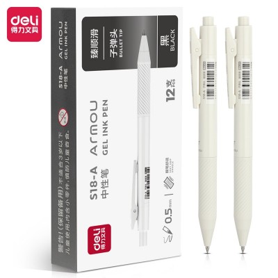 得力S18-A按动中性笔臻顺滑0.5mm子弹头 12支盒装 办公学生书写 黑色