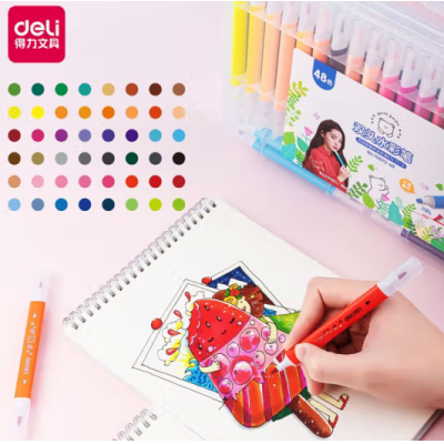 得力(deli)70733水彩笔套装软头儿童幼儿园一年级用双头彩笔36 【软硬双头】可水洗48色-70672