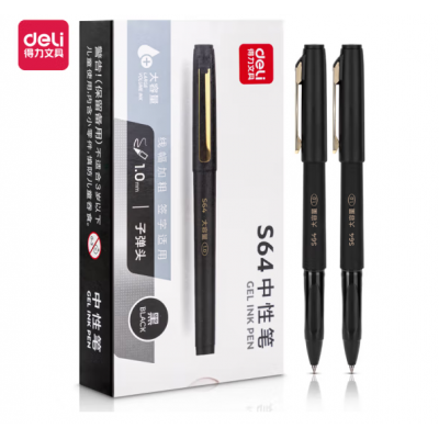 首页 > 办公用品 > 文具 > 得力(deli)商务风大容量拔帽中性笔签字笔 办公办公笔 1.0mm子弹头 12支/盒黑色 S64