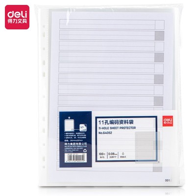 得力 文具文件袋11孔保护袋 11孔编码资料袋 透明活页资料 64052