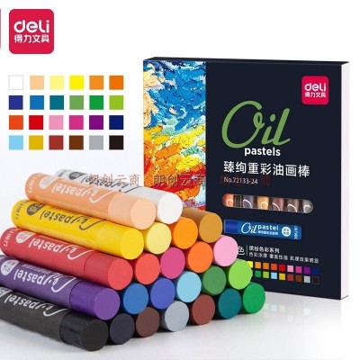 得力(deli)24色重彩油画棒 艺术家级 软性叠色浓彩棒美术蜡笔专业彩绘画笔72133-24