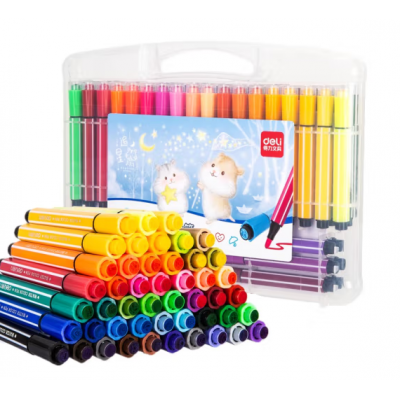 得力(deli)儿童水彩笔追星鼠系列/印章可水洗水彩笔/小学生初学者手绘套装 70737 48色