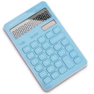 得力1548A计算器 普通计算器(浅蓝)(台)双电源平板式计算器 12位大屏桌面计算机