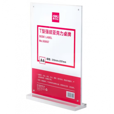 得力(deli)亚克力桌牌展示牌 会议牌桌签 办公用品 50857 T型竖式强磁