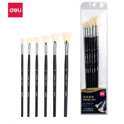 得力(deli)水粉画水彩画颜料画画笔学生手绘画画制图用水粉丙烯油画专用画笔笔刷尖头尼龙毛美术画具 扇形猪鬃毛-黑色6支装(73896)