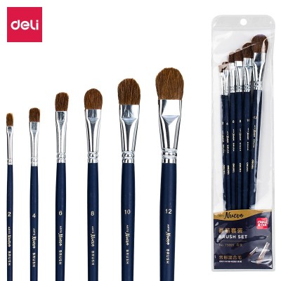 得力73895_舌形混合毛画笔6支套装(蓝色)(6支/袋) 水粉笔套装