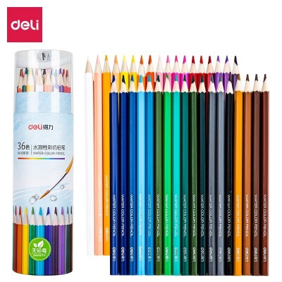 得力68131_36色水溶性六角杆彩铅(混)(36色/筒)彩色铅笔手绘涂色专业美术生绘画笔套装