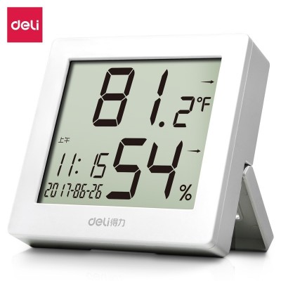 得力(deli)室内温湿度表 LCD电子温湿度计带闹钟功能 婴儿房办公用品 8813