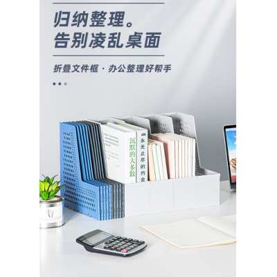 首页 > 办公用品 > 文具 > 得力可折叠创意桌面文件筐文件座伸缩式加厚文件框一体塑料书立书架收纳盒多层学生用桌面文具整理四格资料架 四联可伸缩 灰色 79006