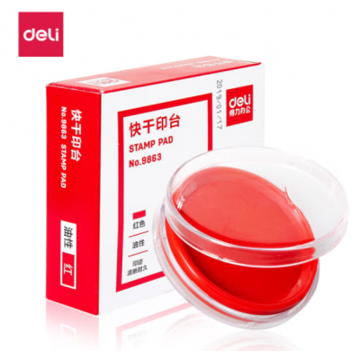 得力(deli)φ82mm透明圆形财务快干印台印泥 办公用品 红色9863
