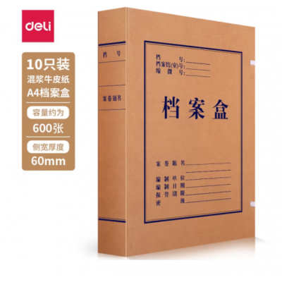 首页 > 办公用品 > 文具 > 【10个装】得力(deli)档案盒A4牛皮纸大号加厚20mm收纳文件盒 混浆牛皮纸63208【60mm】